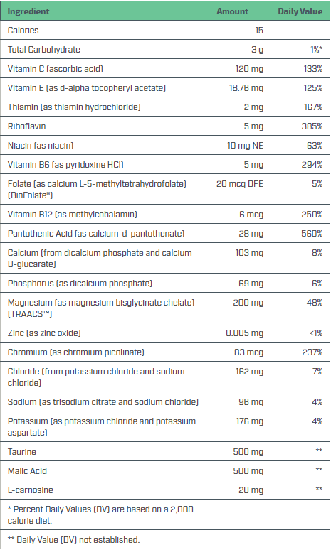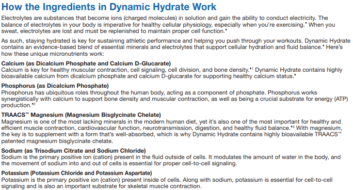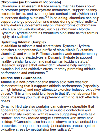 Dynamic Hydrate is a delicious, naturally flavored hydration complex formulated with a balanced profile of key minerals, electrolytes, vitamins, taurine, and carnosine.
